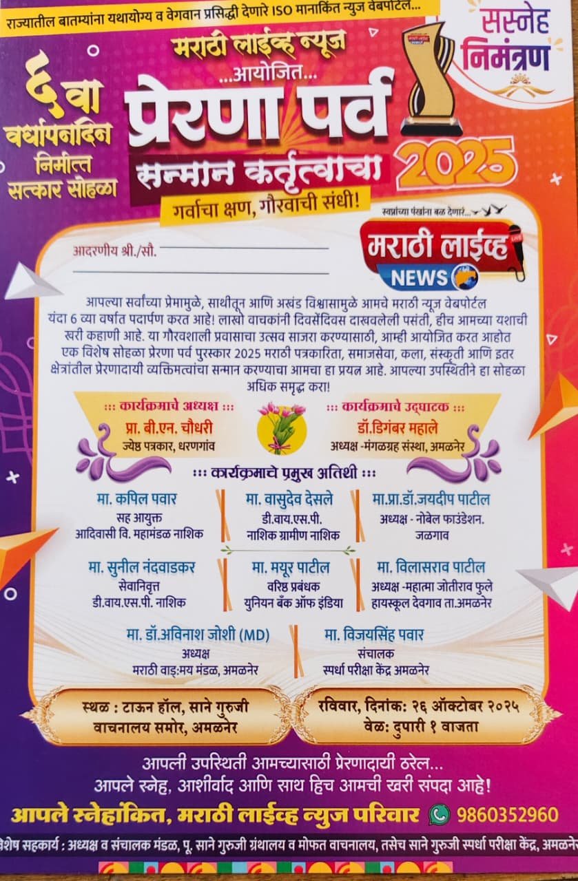 “सहावा वर्धापन दिन व सन्मान कर्तुत्वाचा 2025” हा भव्य सोहळा आयोजित केला आहे.