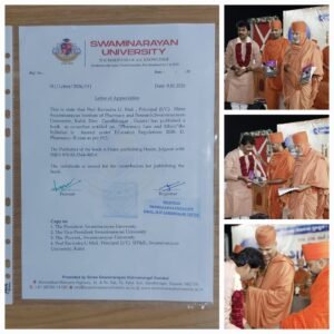 अमळनेर: श्री स्वामी नारायण संप्रदायातील एक भव्य समारंभ शाकोत्सव 2026 मध्ये प्रा. रविंद्र माळी यांचे Pharmacy, Law and Ethics या विषयावरील पुस्तकाचे सर्व संत गण व स्थानिक मंत्री श्री. गजेंद्रसिंग जी. परमार यांच्या उपस्थितीत प्रकाशन करण्यात आले