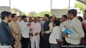 जळगावचे जिल्हाधिकारी रोहन घुगे यांच्या उपस्थितीत बुधवार, दि. 18 मार्च रोजी सकाळी विविध प्रशासकीय अधिकाऱ्यांची बैठक झाली. त्यात भूमी सुपोषण संवर्धन या राष्ट्रीय अभियानाच्या शुभारंभ सोहळ्याच्या तयारी संदर्भात सविस्तर चर्चा करून सर्व विभागांच्या प्रमुखांकडून आढावा घेण्यात आला. याप्रसंगी जिल्हाधिकारी घुगे यांनी सदर अभियान हे कृषी क्षेत्र अर्थात शेतकऱ्यांच्या संदर्भात असल्याने या कार्यक्र्रमास त्यांची उपस्थिती मोठ्या संख्येने लाभण्यासाठी आपण सर्वांनी आपापल्या पातळीवर प्रयत्न करावा. अमळनेरमधील खानदेश शिक्षण मंडळ, लायन्स व रोटरी क्लबचे पदाधिकारी, राजकीय क्षेत्रातील विविध पदाधिकारी, विविध संघटनांचे पदाधिकारी याठिकाणी उपस्थित आहेत त्यांनीही अभियानात सक्रीय सहभाग नोफ्लदवावा, असे आवाहन केले. याप्र्रसंगी अमळनेरचे प्रांताधिकारी मयूर भंगाळे, तहसीलदार रुपेशकुमार सुराणा, चाळीसगावच्या अप्पर पोलीस अधीक्षक कविताताई नेरकर- पवार, उपविभागीय पोलीस अधिकारी विनायक कोते, पोलीस निरीक्षक दत्तात्रय निकम, भाजप महाराष्ट्र प्रदेश चिटणीस भैरवीताई वाघ- पलांडे, खानदेश शिक्षण मंडळाचे संचालक योगेश मुंदडे, भाजपचे जिल्हा उपाध्यक्ष लालचंद सैनानी, राष्ट्रवादी काँग्रेसचे शहराध्यक्ष मुख्तार खाटीक, नगरसेवक सचिन पाटील, उपविभागीय कृषी अधिकारी सी. डी. साठे, तालुका कृषी अधिकारी सी. जे. ठाकरे, निवृत्त नायब तहसीलदार सी. यू. पाटील, सार्वजनिक बांधकाम विभागाचे उपविभागीय अधिकारी विजय गांगुर्डे, जळगावचे अन्न सुरक्षा अधिकारी आकाश बोऱ्हाडे, पारोळ्याचे वनक्षेत्रपाल एस. बी. देसले, महावितरणचे अतिरिक्त कार्यकारी अभियंता टी. एच. नेमाडे, वैद्यकीय अधीक्षक डॉ. प्रकाश ताडे, तालुका वैद्यकीय अधिकारी डॉ. गिरीश गोसावी, अमळनेर पालिकेचे मुख्याधिकारी गणेश शिंदे, गटविकास अधिकारी एन. आर. पाटील, सार्वजनिक बांधकाम विभागाचे कार्यकारी अभियंता सुभाष राऊत, बी. एम. खरे, पी. व्ही. देसले, किशोर माळी, पी. ए. पाटील, भरतसिंग परदेशी, मंगल सिक्युरिटी एजन्सीचे संचालक राजेंद्र यादव, दिनेश शेलकर, अमळनेर आगारप्रमुख प्रमोद चौधरी, जलसंपदा मंत्री ना. गिरीश महाजन यांचे स्वीय सहाय्यक पितांबर भावसार, कैलास दायमा, नरेंद्र धनराळे, मंगळग्रह सेवा संस्थेचे अध्यक्ष डॉ. डिगंबर महाले, उपाध्यक्ष एस. एन. पाटील, सचिव सुरेश बाविस्कर, सहसचिव दिलीप बहिरम, खजिनदार गिरीश कुळकर्णी, विश्वस्त अनिल अहिरराव, श्रीमती जयश्रीताई साबे, डी. ए. सोनवणे, आनंद महाले, प्रशासकीय अधिकारी आर. जी. चव्हाण आदी उपस्थित होते.